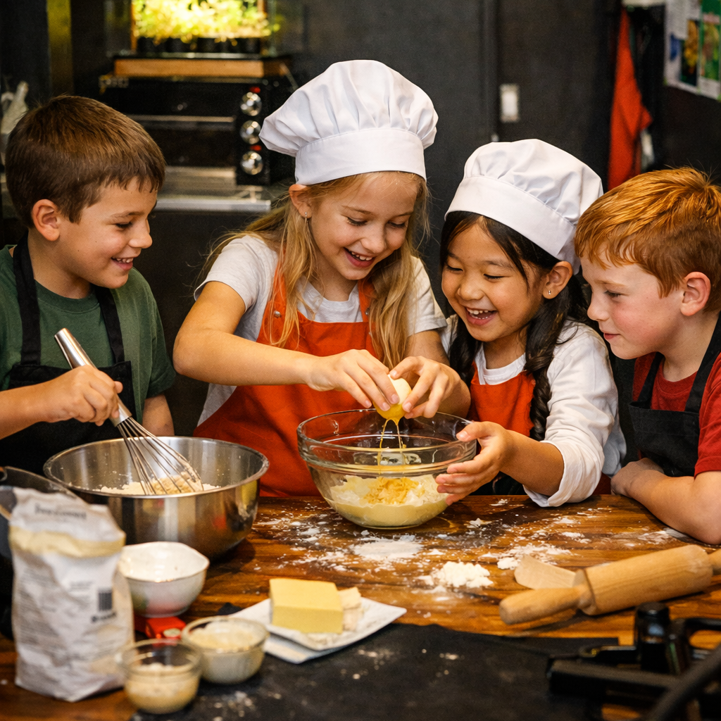 Every Monday, kids enjoy a 2-hour hands-on cooking and baking class with Miss Theresa. They learn age-appropriate kitchen skills, follow simple recipes, and build confidence—all while having fun in the kitchen. Classes encourage creativity, teamwork, and basic cooking techniques in a supportive and playful environment.