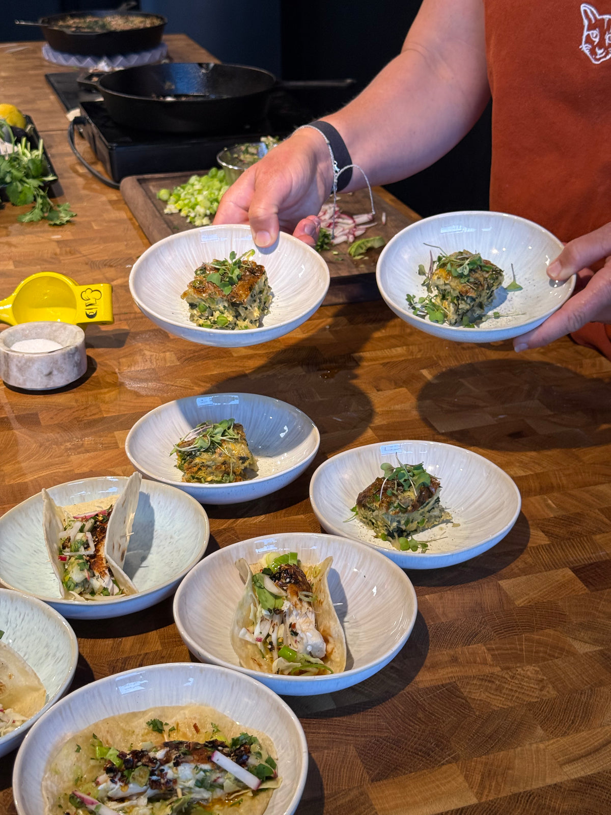 Cook in an intimate group of 8 guests (4 twosomes), each with a fully set workstation using local, fresh ingredients and all necessary tools.